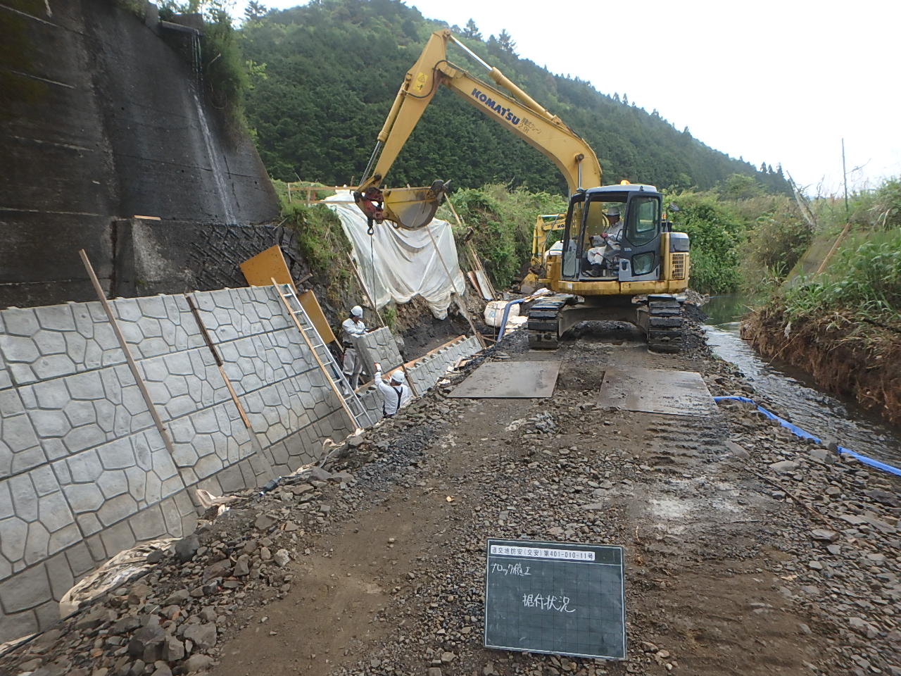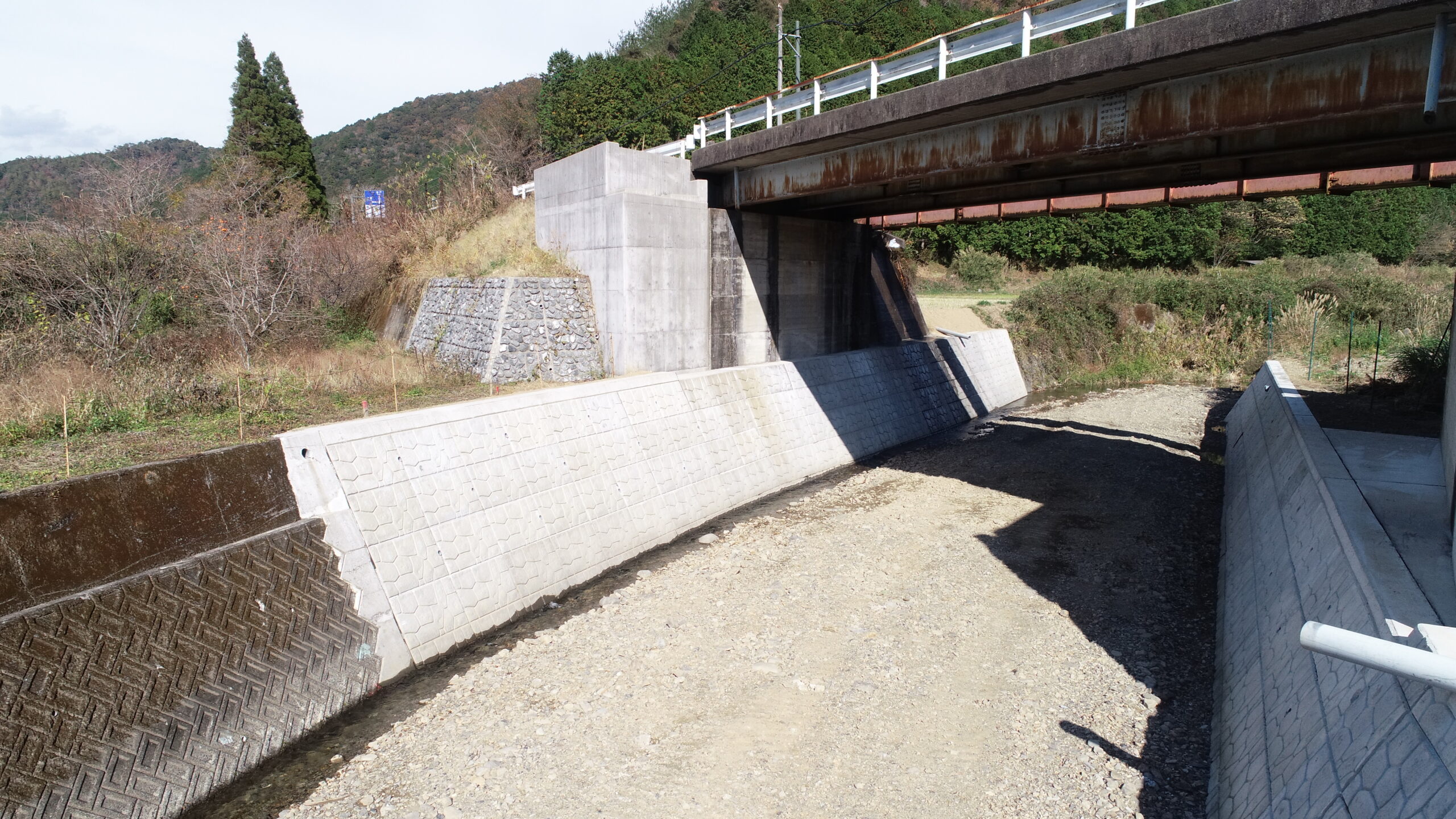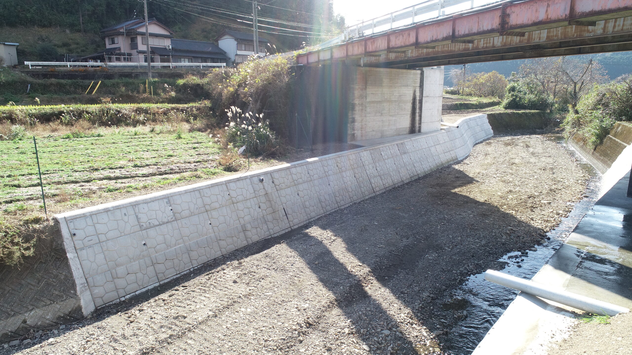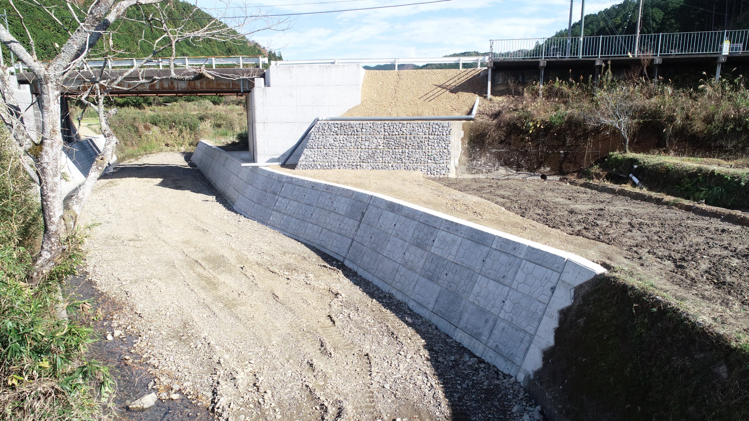 台風での増水や鮎の漁業期間の工事中止などによる工事が進められない期間がありましたが、事故が発生することなく工事を無事完成させることができました。